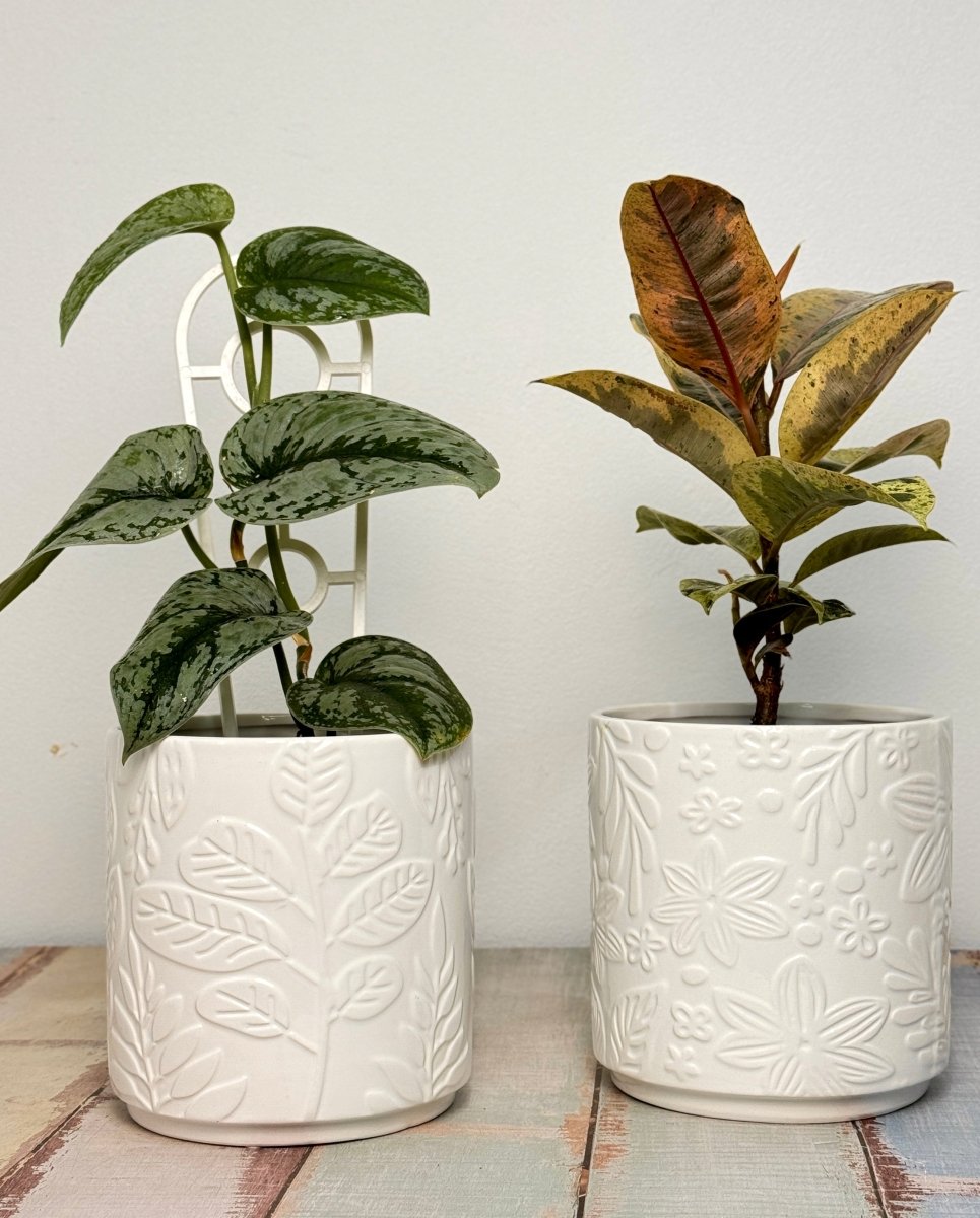 Canopy Ceramic Pot blends timeless design with modern function, perfect for showcasing indoor greenery. Crafted from durable ceramic with an elegant embossed leaf pattern, this pot elevates any space with natural charm.