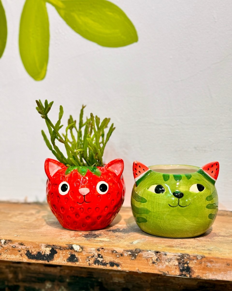 Bring playful charm to your shelf with this fruity cat ceramic pot, perfect for small plants and succulents and guaranteed to spark smiles. Lightweight ceramic with a smooth finish adds a pop of colour to desks, kitchens, and kid-friendly corners.