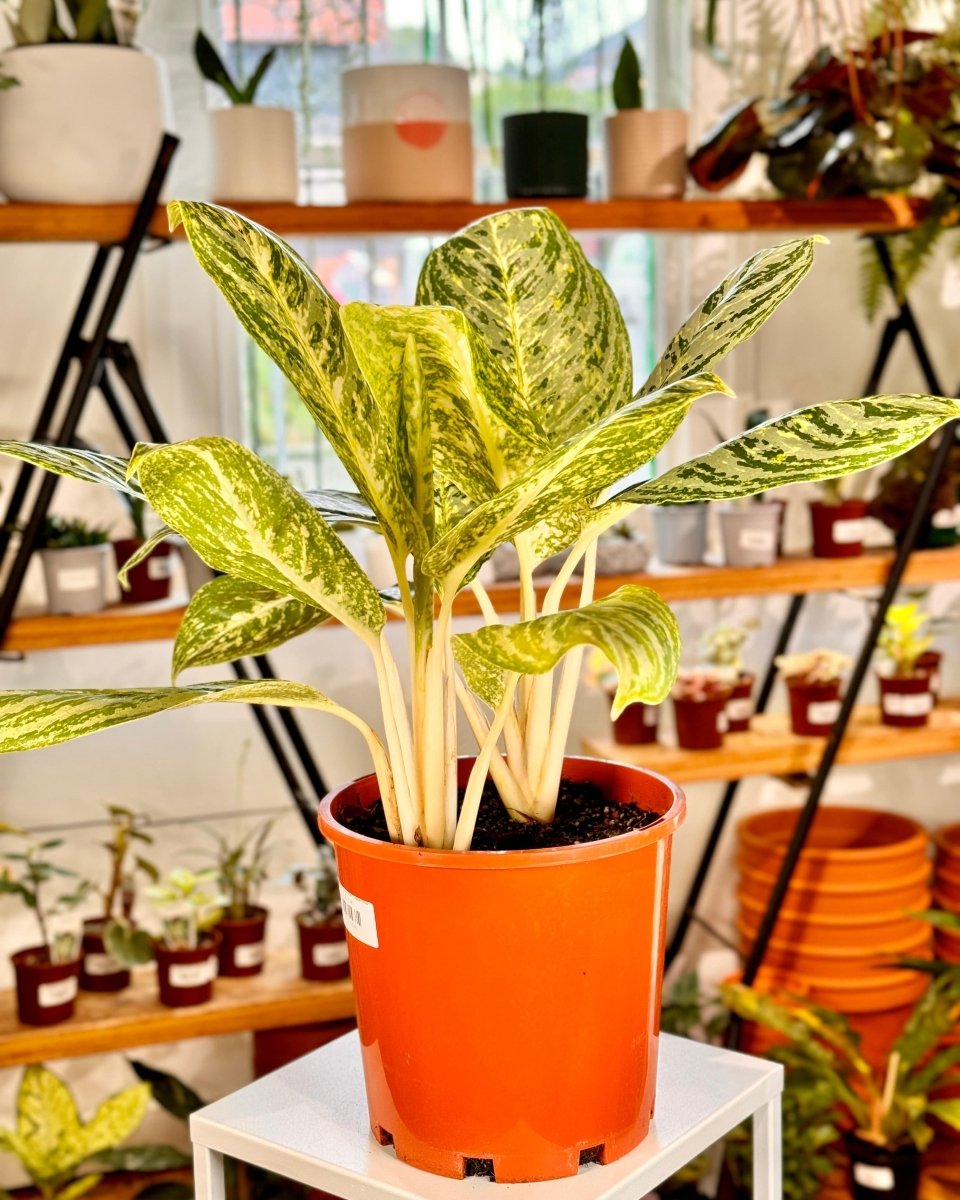 Bring a unique and lighthearted vibe to your decor with this quirky and beautiful Aglaonema.