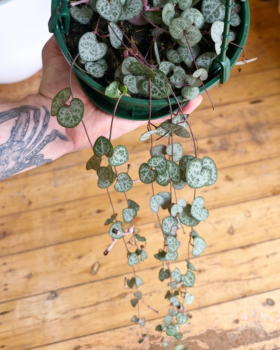 String of Hearts are very sensitive to overwatering, so make sure that you give them just enough water. Our recommended amount is once every two weeks. They can tolerate drying out between water during warmer months.